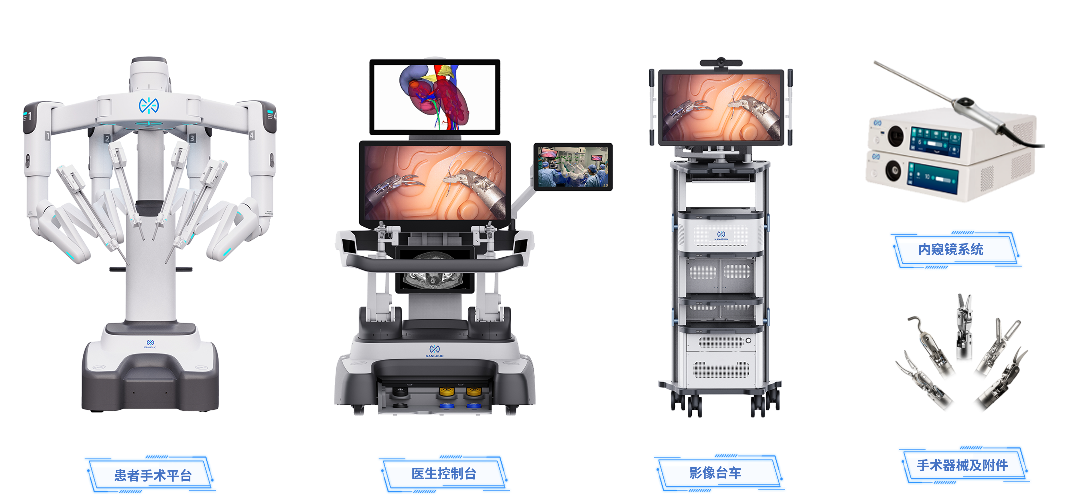 經過多年的探索和積累,在手術機器人領域形成了一系列核心技術和獨創(chuàng)性成果,研發(fā)構建了以腔鏡手術機器人家族為核心的豐富的手術機器人產品矩陣,覆蓋泌尿外科、 婦科、普外科、胸外科、耳鼻咽喉頭頸外科、骨科等多科室。